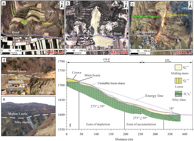 极端气候条件下滑坡的多期次复活、多次致灾是黄土高原滑坡的显著特征,严重制约工程建设和城镇规划发展,对人类生命财产造成直接威胁。因此,对该类滑坡的多期次复活特征及运动范围Run-out开展深入研究十分必要。基于此,地质力学研究所地质安全风险评价研究室、自然资源部地质灾害陕西宝鸡野外科学观测站孙萍研究员团队,聚焦当前国际滑坡机理与风险防控研究热点,针对多期复发的黄土滑坡灾害开展了Run-out运动学研究。
