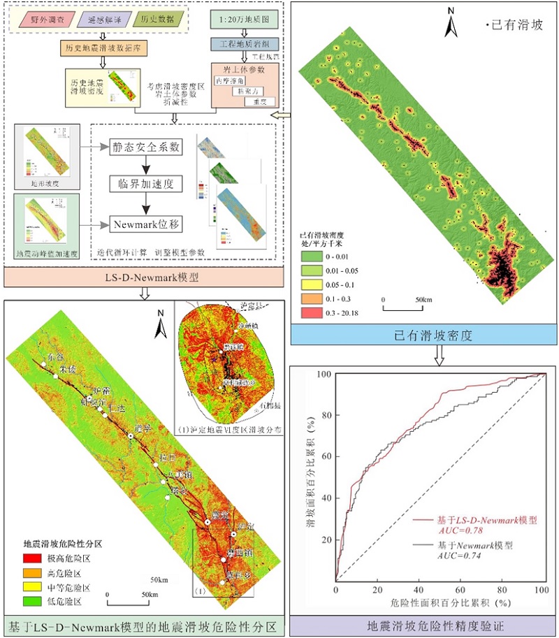 地震诱发滑坡是危害极为严重的一种地质灾害,在强震作用下诱发的滑坡,具有规模大、分布广、危害强等特点,受活动断裂性质、地震动强度、地层岩性和地形地貌等因素影响,在以往地震滑坡危险性评价中存在评价准确率低、预测难度大等难题,给震后应急救援和防灾减灾提出了极大挑战。近年来,地质力学研究所郭长宝研究员团队围绕地震滑坡危险性评价、震后滑坡快速预测、识别与分析等方面开展持续攻关研究,取得新研究进展。