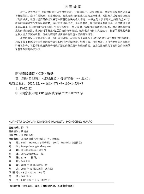 专著聚焦黄土高原大型黄土-红层滑坡的模式与成因机理,依托长期科研攻关与工程实践,整合现场勘查、无人机航测、原位试验及数值仿真等技术手段,系统厘清该类滑坡的孕灾环境、分布规律与演化机制,深度解析典型案例的力学特征与破坏模式,助力读者深刻认知黄土-红层滑坡的发生规律与应对方法,支撑推动黄土高原重大滑坡灾害治理与风险防范工作迈向科学化、精细化的新阶段。