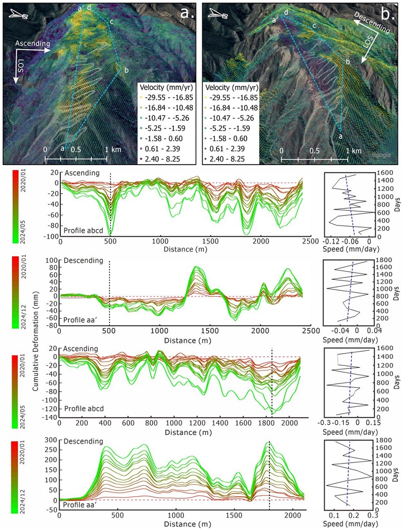 图2 升/降轨观测条件下的滑坡变形速率及累积变形量