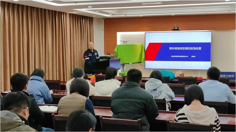为进一步增强全员安全生产意识,普及野外急救知识和技能,提升野外安全生产能力,根据近期安全生产工作部署,地质力学研究所于11月18日上午组织开展了野外急救技能与北斗设备使用专题培训。本次培训采用现场讲授与线上同步直播相结合的方式,确保全员参与。