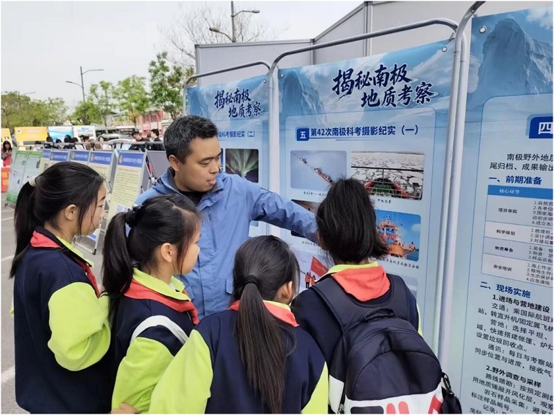4月22日,地质力学所受邀参加第57个世界地球日科技嘉年华暨“地学之光”科普创新实践成果交流展示活动,在中国地质博物馆外科普广场,精心展示了科普展板《揭秘南极地质考察》,科普视频《冰原上的极地探索》《你所知与未知的南极大陆》,科普读物《我要去南极》,科研成果《南极普里兹带1:5万地质图》《东南极格罗夫山1:5万地质图》与科考摄影集锦。第42次南极科考队员、郑光高副研究员细致讲解了南极地质考察工作、极地地质科研价值及南极生态保护知识,与现场观众进行了互动交流。