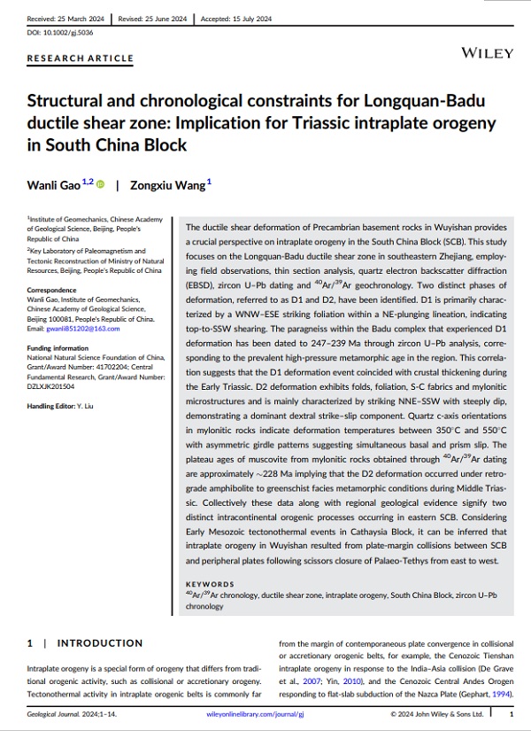 Structural and chronological constraints for Longquan-Baduductile shear zone: Implication for Triassic intraplate orogeny in South China Block