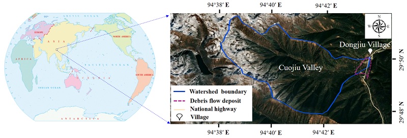 西藏东南部地区地形复杂,构造运动频繁,地表侵蚀剧烈,且降水丰沛。近年来,该地区冰湖溃决、暴雨山洪、雪岩崩等复合型高位泥石流灾害频繁发生,带来了严重的经济损失和人员伤亡。然而,高原山区特殊环境对地质灾害风险评价综合研究带来了巨大挑战,特别是云量多、地形崎岖、高海拔地区降雪等因素,阻碍了遥感数据的获取和准确解译,恶劣气候条件和高海拔,严重影响了无人机数据采集。