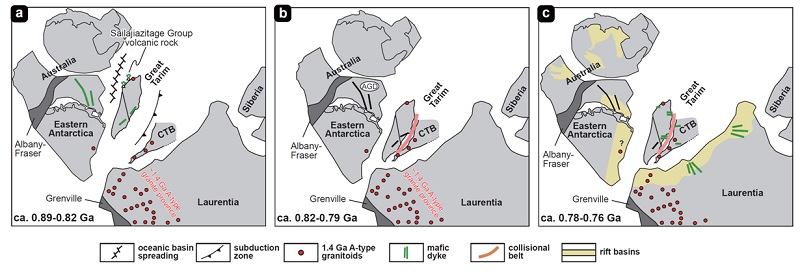 新元古代(~10-5.4亿年前)是地球在其地质历史演化进程中的一个重要转折阶段。该时期一个全球性的超级大陆——罗迪尼亚超大陆——逐步拼合形成,随后又逐渐分崩瓦解。这一地质过程深刻地改变了地球岩石圈的板块构造格局,也为随后适宜生命生存的自然环境形成提供了奠基。数十年来,地质学家们努力通过地质证据和古地磁等手段开展联合约束,使得世界上多数大型克拉通在罗迪尼亚超大陆的重建位置已得到较为妥善的配置。但是,诸如亚洲等地区的众多小型克拉通的古地理位置仍不明确。