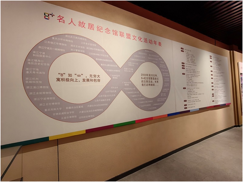 “8+”名人故居纪念馆联盟诞生于2000年,是北京宋庆龄故居、李大钊故居、北京鲁迅博物馆、郭沫若纪念馆、茅盾故居、老舍纪念馆、徐悲鸿纪念馆、梅兰芳纪念馆等8家名人故居凝聚力量,整合资源,挖掘优势,相互连接的产物。之后又有李四光纪念馆、詹天佑纪念馆的加入,还吸收了天津李叔同故居纪念馆、天津梁启超故居纪念馆、青岛康有为故居纪念馆、广州红线女艺术中心等加入,从最初的“八家”变成“8+”。“8+”故居纪念馆联盟成员分属全国8地,14位名人的19家故居纪念馆,包括京津冀、长三角、珠三角地区等。