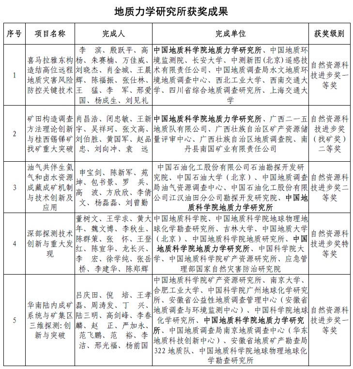 喜报!地质力学研究所多项研究成果获2024年度自然资源科学技术奖