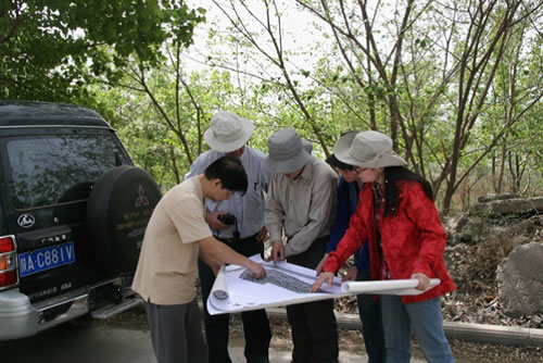 2013年4月15日—4月17日,香港科技大学Charles Wang Wai Ng教授、魏邦鹏博士及西班牙马德里大学Eduardo ALONSO教授在力学所孙萍副研究员、石菊松副研究员及何晓磊硕士等人的陪同下,对宝鸡地区的地质地貌背景、黄土地层的地质特征、黄土滑坡的分布特征及孕灾环境进行了调研与分析,并重点围绕项目研究内容对宝鸡市区卧龙寺滑坡、狄家坡滑坡、簸箕山滑坡、汶家庄黄土剖面及长寿沟黄土泥岩剖面进行了现场考察工作。考察结束后,吴宏伟教授等一行对黄土力学特性和滑坡形成机制研究表现出了浓厚的兴趣,并从非饱和土力学的角度对宝鸡地区浅表层黄土滑坡在降雨作用下的形成机制提出了新的见解。最后,双方讨论了合作项目的具体实施方案,表达了进一步开展长期合作的良好愿望。