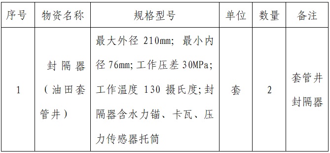 2.采购项目名称:封隔器采购项目