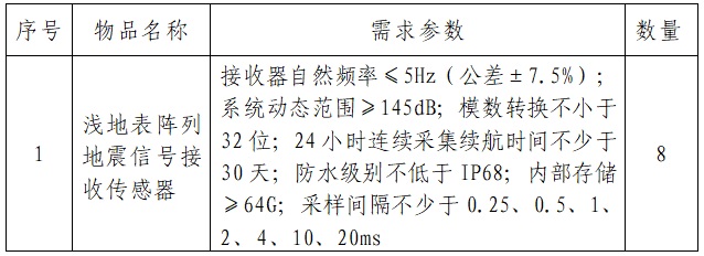 2.采购项目名称:浅地表阵列地震信号接收传感器采购项目