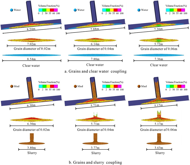 滑坡坝是青藏高原地区流域性地质灾害链中的关键组成部分,其特性直接控制着堰塞湖的蓄水能力及溃坝后的洪水动态。这些天然坝体有着特殊的岩土材料各向异性,该性质从根本上决定了滑坡坝的溃决模式。然而,由于材料复杂性,对滑坡坝中多相态的数值模拟面临重大挑战。本研究采用多相态流体连续介质模型,以表征各向异性滑坡坝的堆积模式。通过对比滑槽试验和实际滑坡案例的结果,研究表明:(1) 堆积区地形和滑坡分类(碎屑流、泥石流和泥流)共同影响着滑坡坝的三维各向异性特征。这些因素与滑坡坝形成过程中滑体的动态体积分数具有强相关性。(2) 基于多相态流体连续介质模型的滑坡后破坏模拟方法(LPF3D),能够有效捕捉天然滑坡坝在几何形态、粒度分布、泥沙浓度、固-液组成以及各向异性岩土属性方面的关键特性。本研究结果不仅为滑坡-堰塞湖-洪水灾害链的数值模拟提供了新方法,也为流域性地质灾害链的风险评估奠定了重要理论基础。