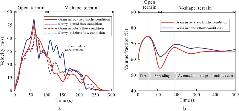 图4三种滑坡(碎屑流、泥石流和泥流)模拟曲线对比图